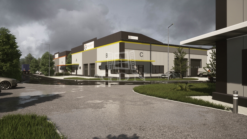 A csarnokokhoz tartozik a csarnok előtt lévő terület, illetve minden csarnokhoz jár plusz parkolóhely is.