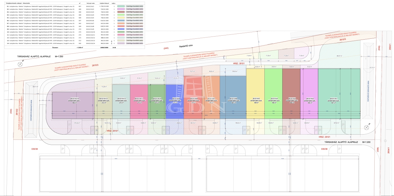 • Ipari társasházi konstrukció, minden vásárló 1/1 arányú kizárólagos tulajdon hányadot, vagyis önálló társasházi albetétet vásárol.