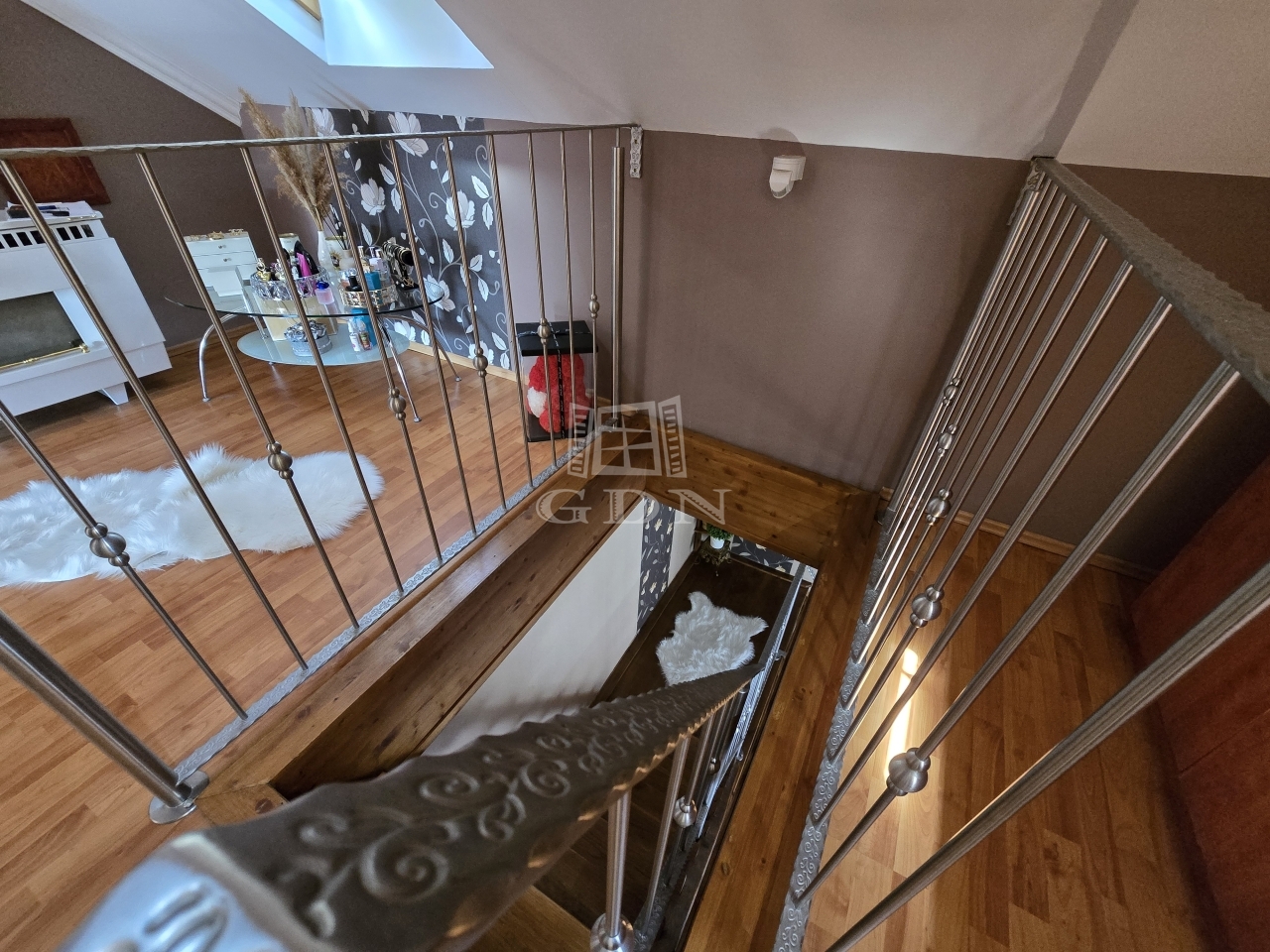 Az emeleten egy világos közlekedő, két szoba, gardrób, valamint egy erkély kapott helyet, amely kellemes, privát kikapcsolódási lehetőséget kínál.