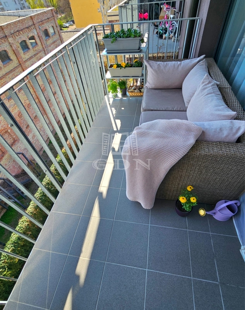 A 32 m²-es alapterületet egy tágas, 7 m²-es erkély egészíti ki, ahol egy külön zárható tároló is helyet kapott.