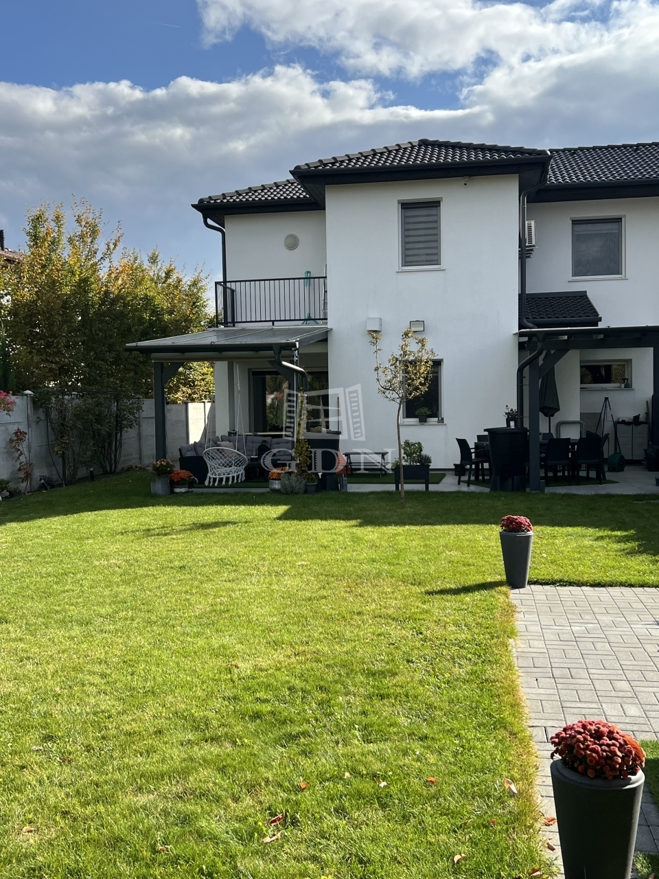 - Nagy terasz fedett részekkel, gyönyörűen parkosított kert