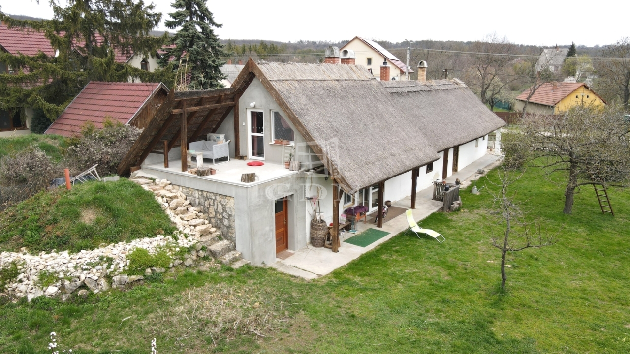 Vh-00 Csákberényben, a Petőfi Sándor utcában eladó egy 100 m² hasznos alapterületű, felújított, nádtetős ,,parasztház” 2333 m²-es telken.