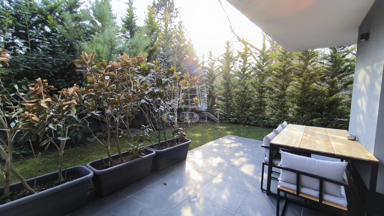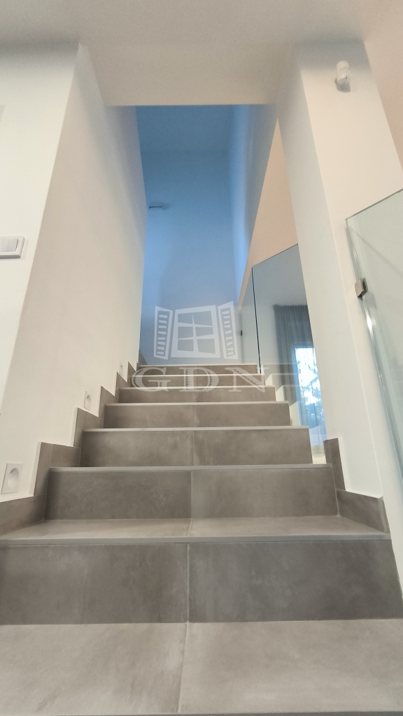 A földszinten az amerikai konyhás nappali mellett van még egy háló és egy fürdőszoba is, a lépcső alatt kis tároló. A nappaliból kilépve érünk a 34 négyzetméteres teraszra, az intimitást biztosító, karbantartott kertbe. Az emeleten 3 háló ( 2 teraszos), egy fürdő és a szauna helység található zuhanyzóval.