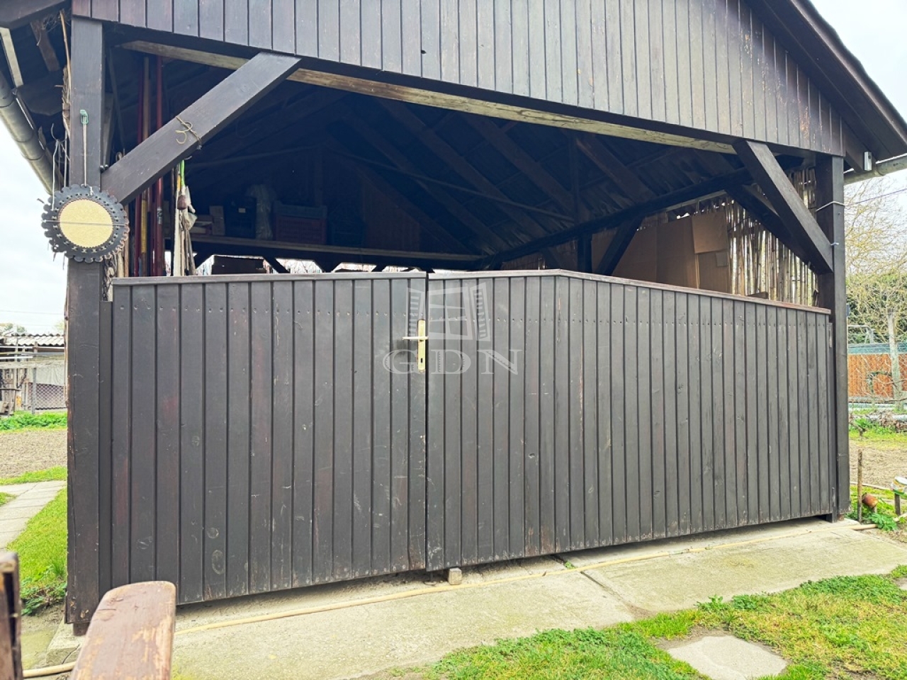 A gondozott kert fúrt kúttal ellátott, gyümölcsfákkal, dísznövényekkel és cserjékkel beültetett, zárt kerítéssel körülvett. Az udvaron 20 m²-es fedett gépkocsibeálló és több tárolási lehetőség is rendelkezésre áll.
