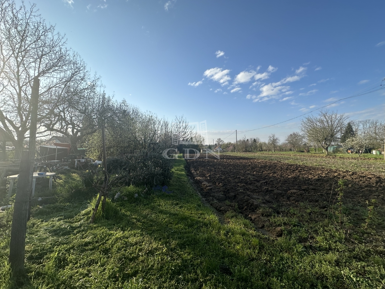 A gondozott területen gyümölcsfák és szőlőtőkék, valamint egy kis 12 m2-es kerti felépítmény található.