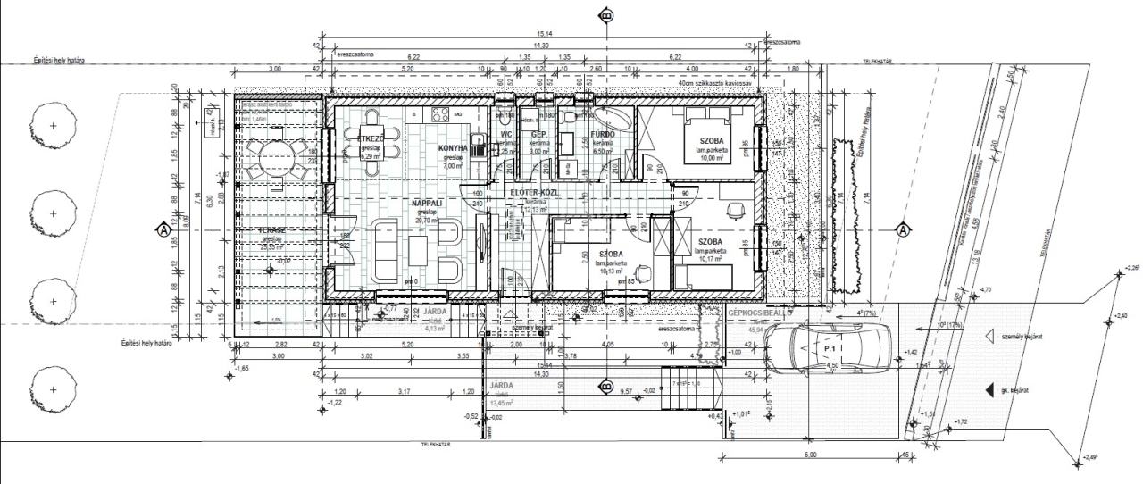 A ház riasztó előkészítéssel, kaputelefonnal, elektromos kiállásokkal, napelem- és autótöltő csatlakozási lehetőséggel készül. A telekhez kerítés, térkövezett terasz és beálló, valamint alap tereprendezés tartozik.