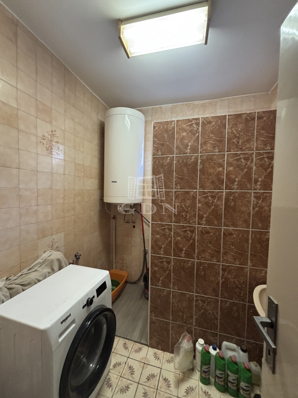 Tágas fürdőszoba,- burkolatokat 2020-ban cserélték.