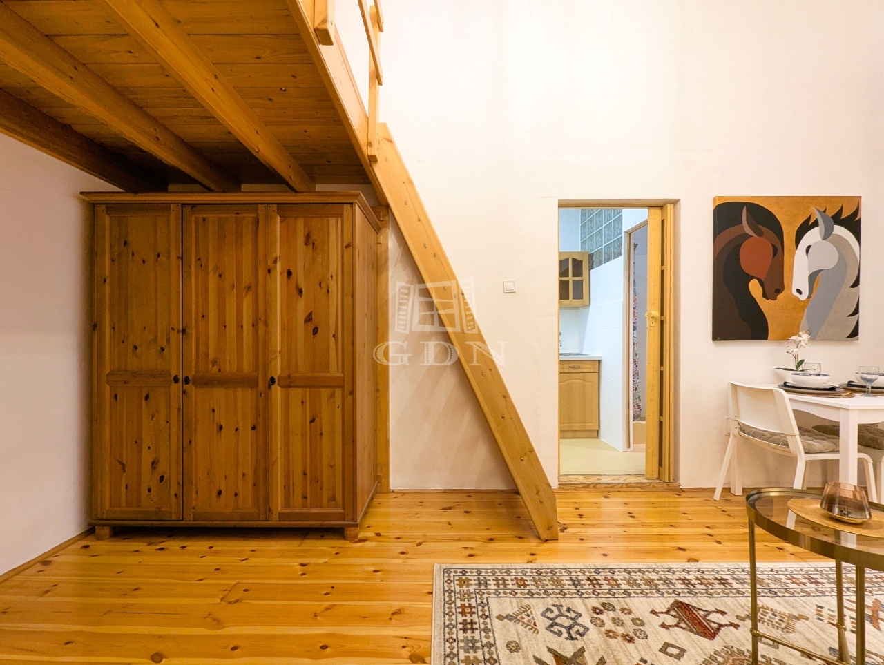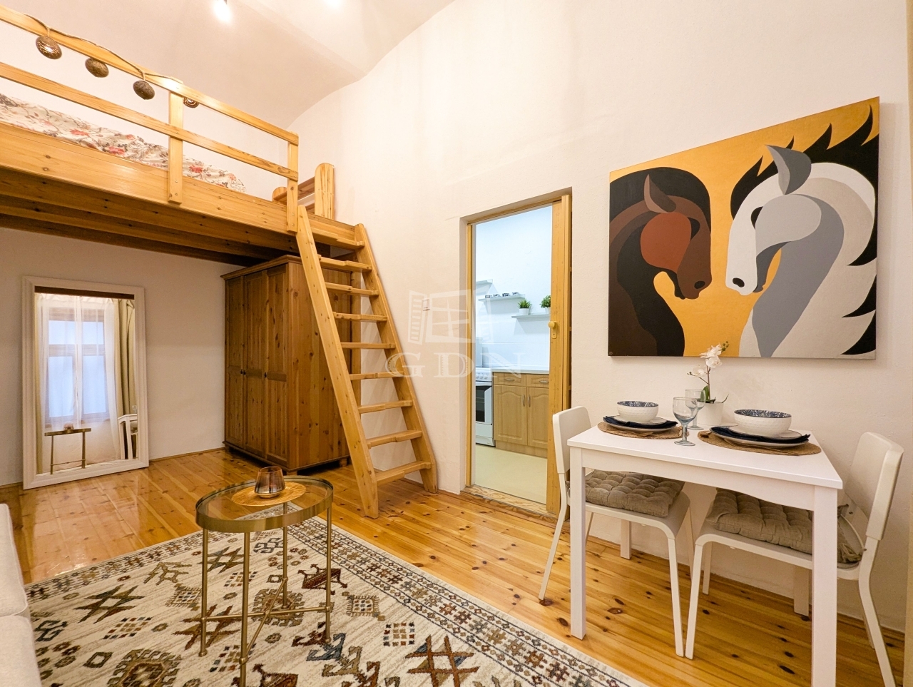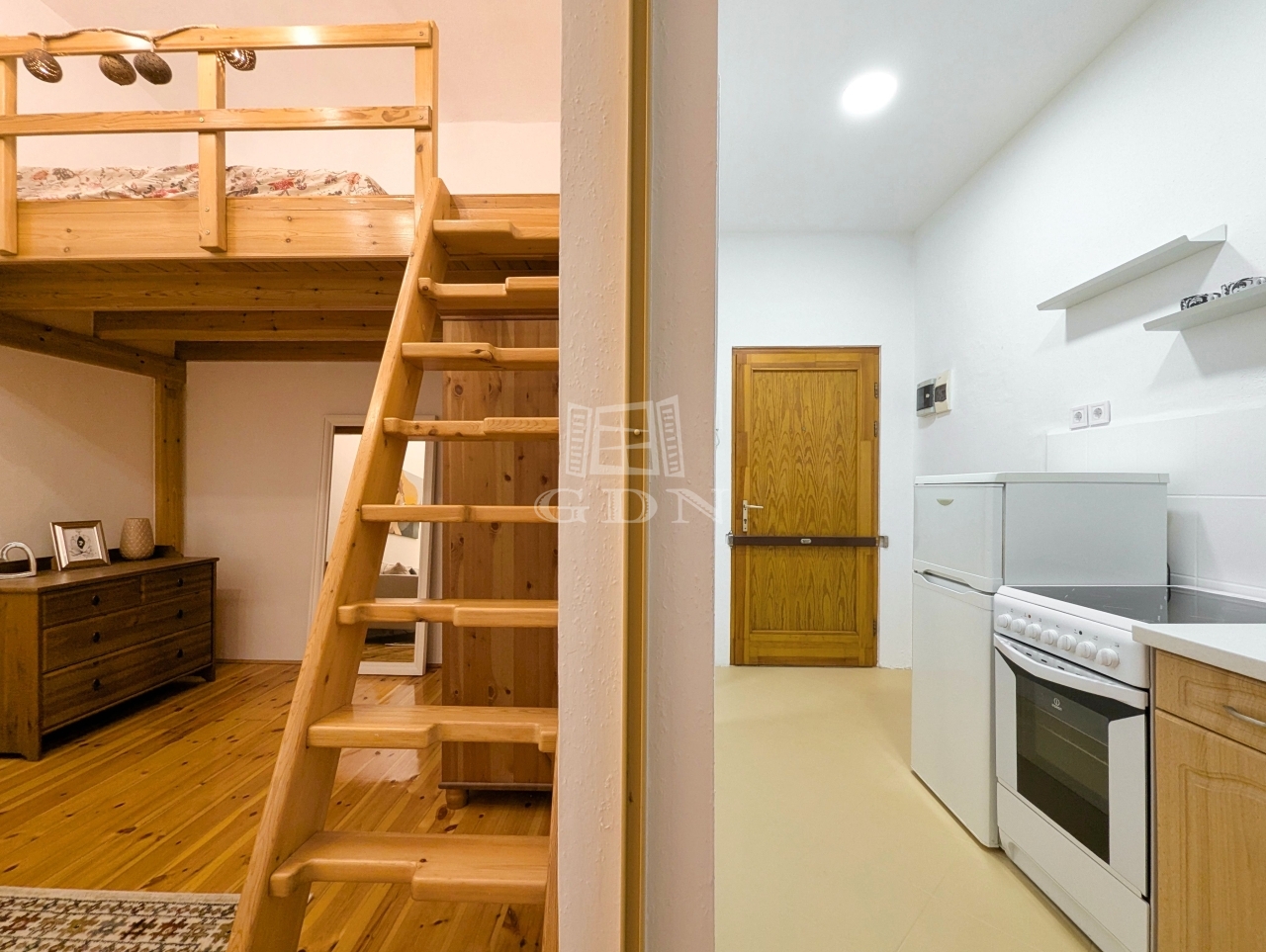 • Helyiségek: Előszoba-konyha, külön helyiségben található WC, zuhanyzós fürdőszoba, valamint egy tágas, világos szoba galériával.