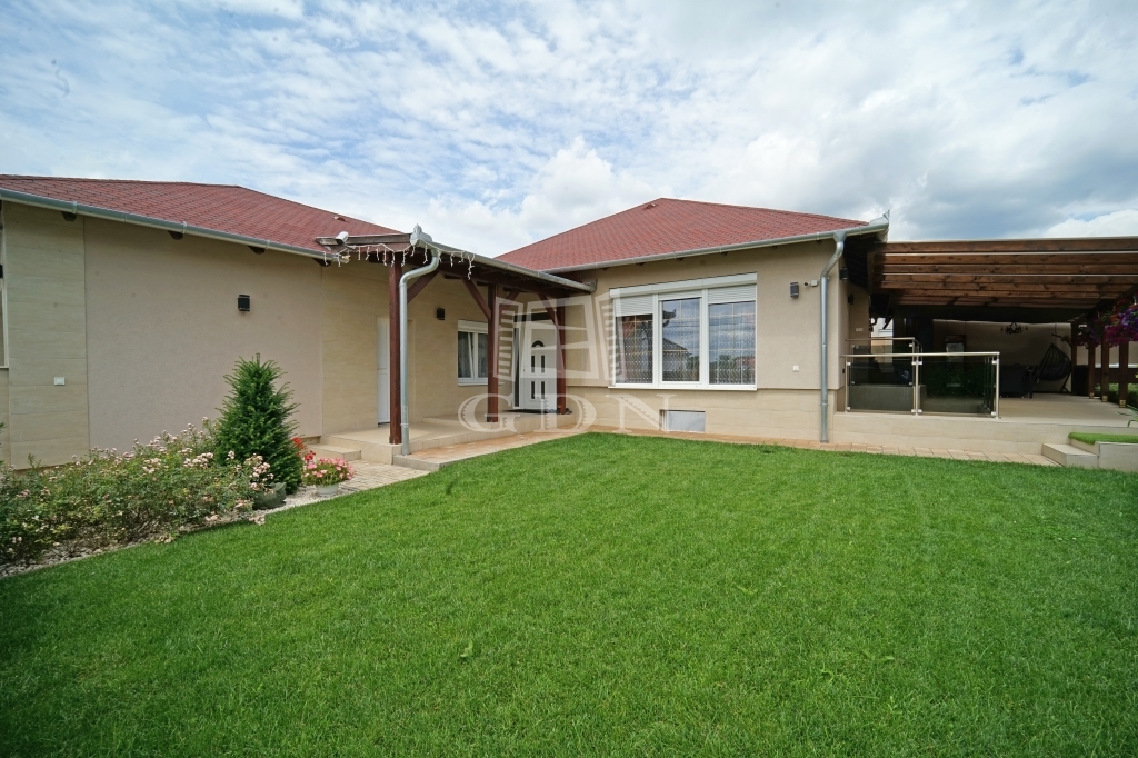A parkosított kertet öntözőrendszer locsolja helyettünk. A megközelítőleg 70m2-es fedett terasz kiválló helyszíne a családi összejöveteleknek és a pihenésnek. Az itt található jacuzzi is a vételár részét képezi.