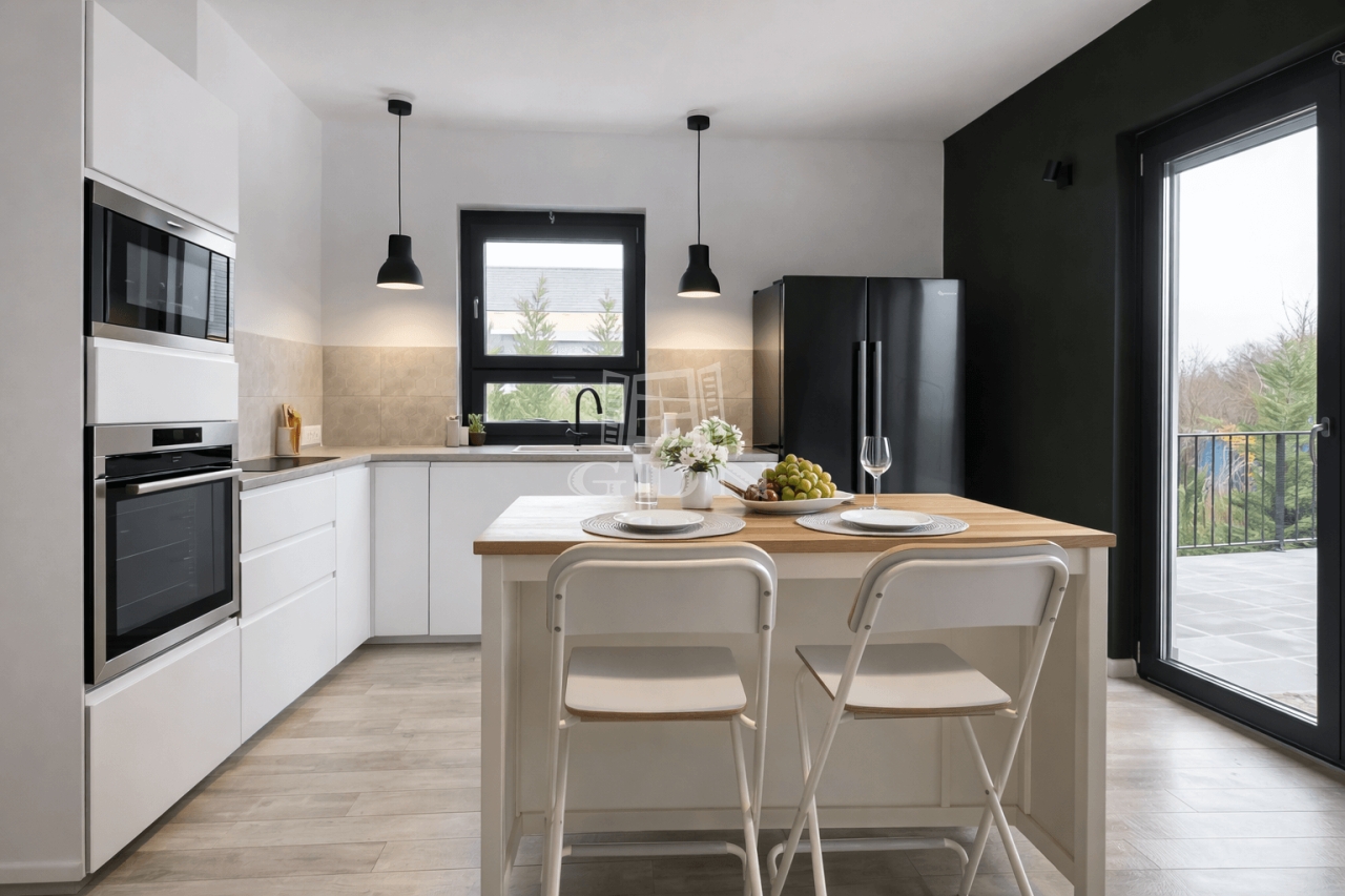 A konyha prémium AEG gépekkel felszerelt. A komfortot elektromos redőnyök és klímaberendezés növeli. A korszerű gázkazánnak köszönhetően az ingatlan gazdaságosan fenntartható.