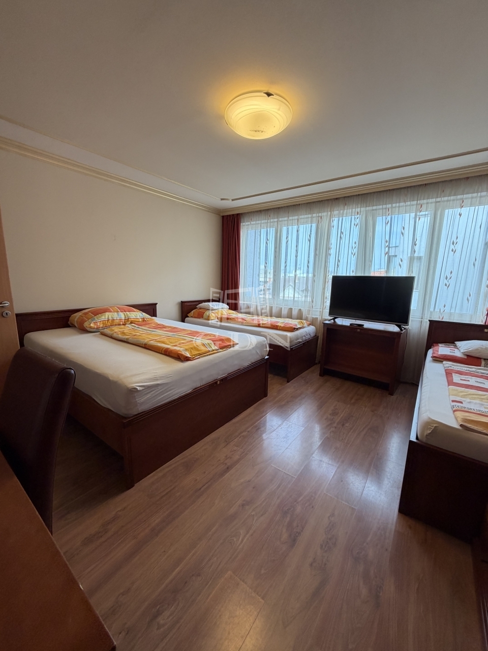A 2008-ban épült, többcélú épületben található lakás praktikus és sokoldalú elrendezésű: három külön bejáratú szobával rendelkezik, amelyek mindegyike saját fürdőszobával, WC-vel és klímaberendezéssel felszerelt. Ez a kialakítás rendkívül ritka, és számos felhasználási lehetőséget kínál.
