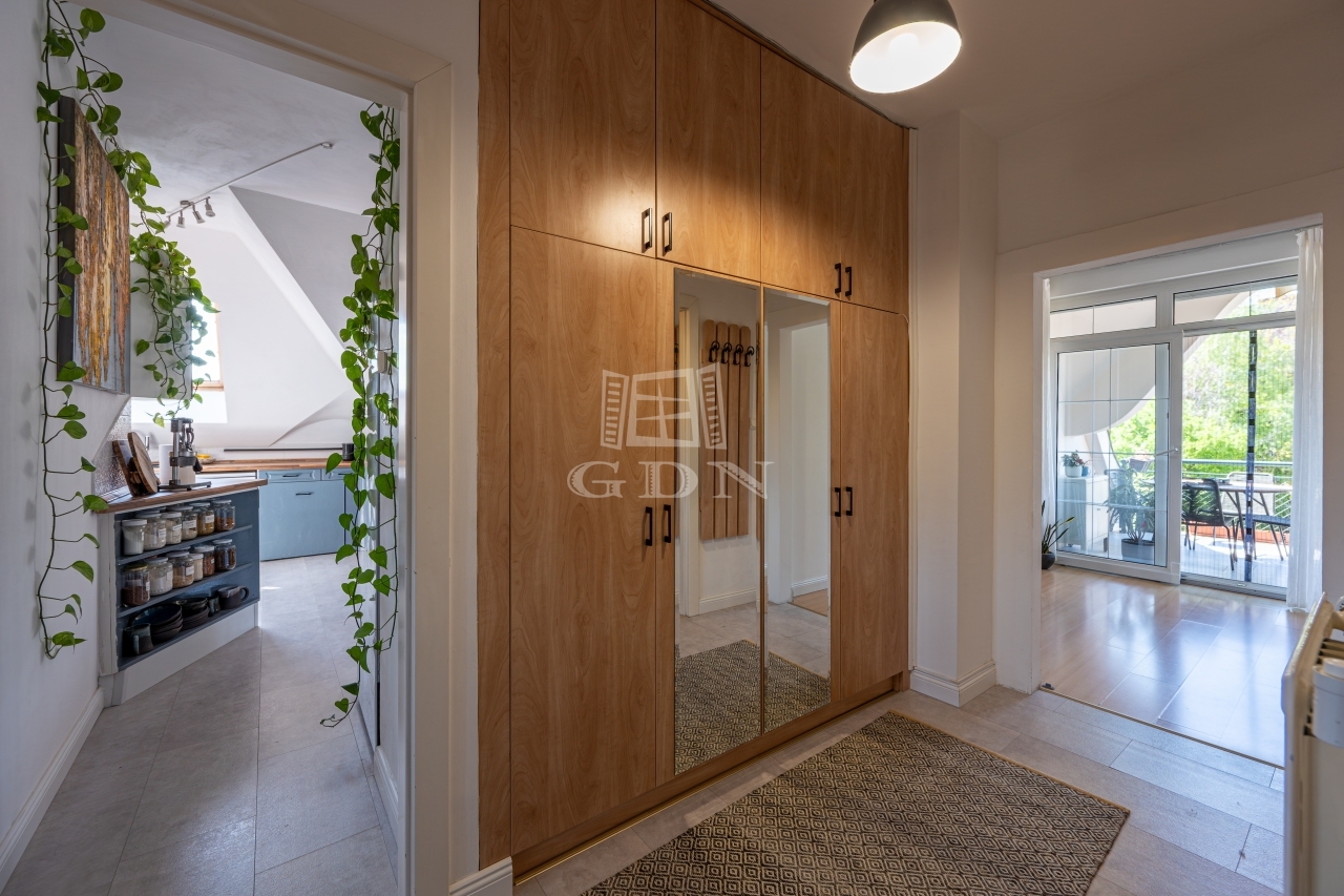 PANORÁMÁS tetőtéri, 74 nm-es lakás amerikai konyhás nappalival és 2 hálószobával (egyik szoba jelenleg 2 kisebbé alakítva).