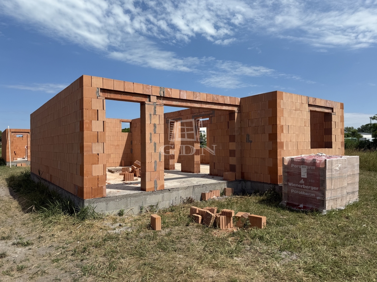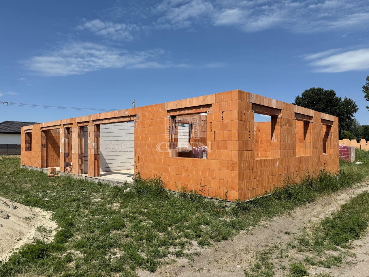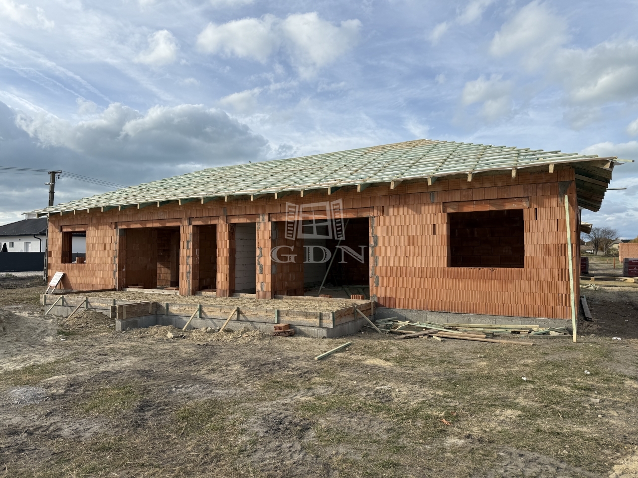 14 lakás alapja elkészült, a tartószerkezeti falak kialakítása folyamatban van. Az ingatlanokhoz szükséges tégla, cserép, fa anyag, nyílászárók beszerzése megtörtént.