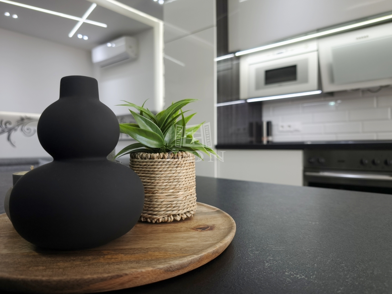 A gépesített, beépített konyha sütővel, hűtőszekrénnyel, mikrohullámú sütővel és kivezetett szagelszívóval felszerelt, így a lakás azonnal költözhető.