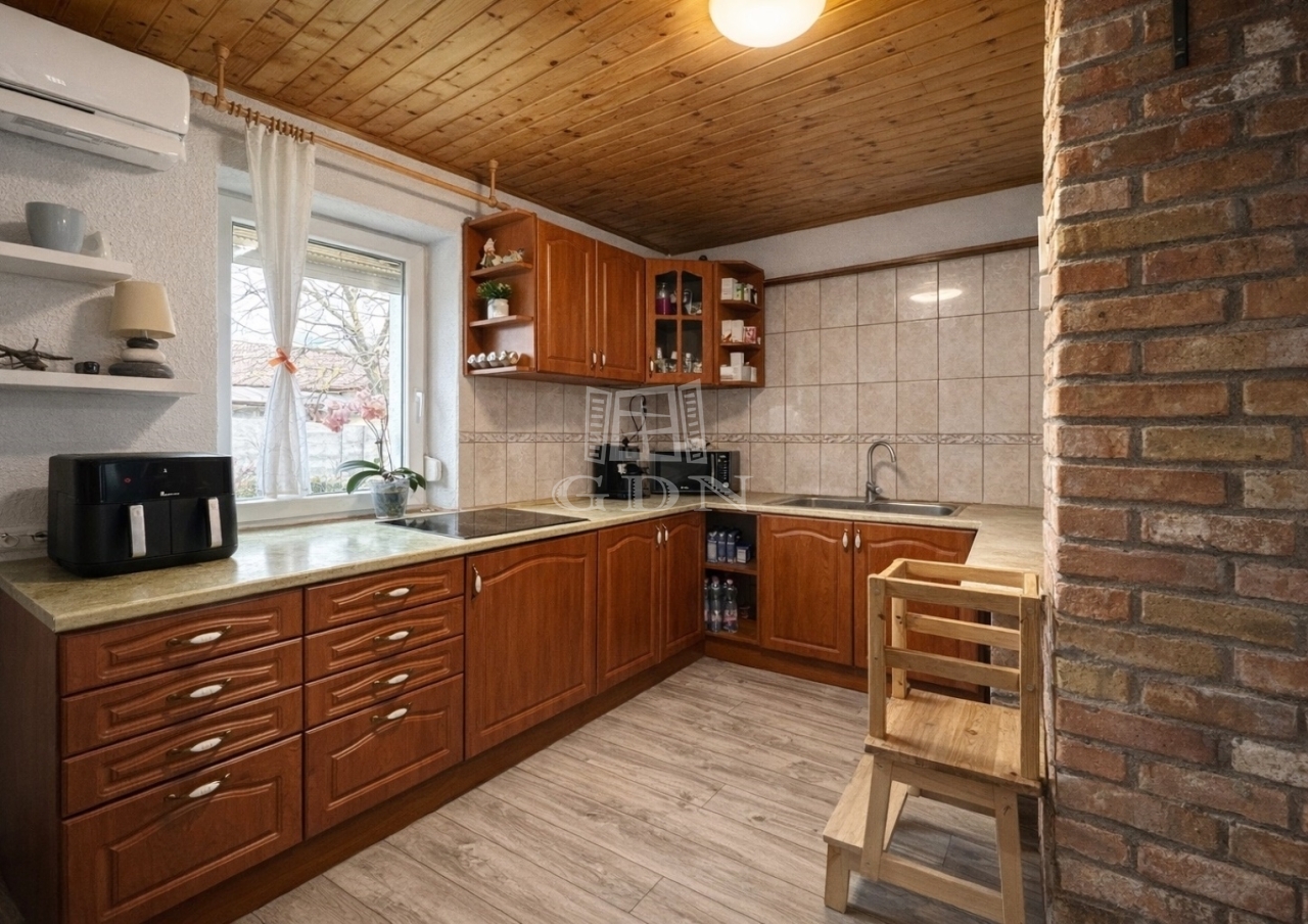 A földszinten (111m2) előszoba, közlekedő, konyha, vendég WC, 3 szoba, gardrób, két fürdőszoba, mosókonyha, kazánhelyiség (külön bejárattal) került kialakításra. A házhoz kapcsolódik egy ~30m2-es, boltíves pince is.