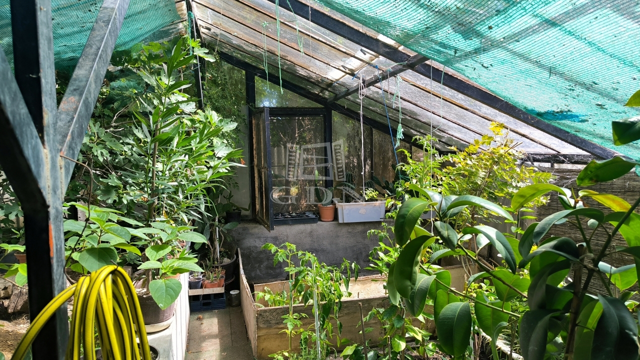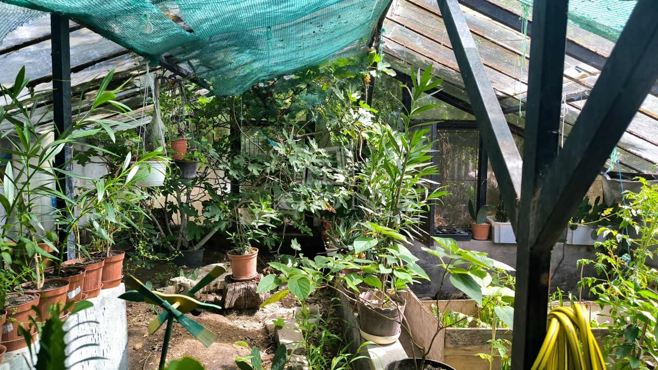 Földszinten találjuk a nappalit, étkezős konyhát, fürdőszobát. Innét kijuthatunk egy fedett teraszra ami ÜVEGHÁZ-zá lett alakítva, így adva egyediséget az ingatlannak.