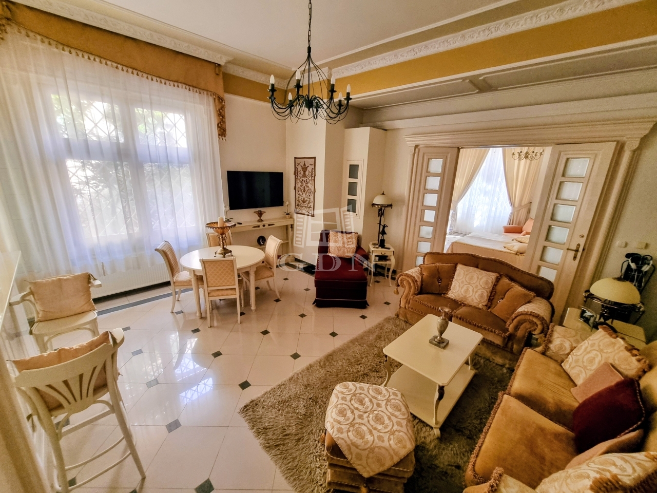 Térkiosztása: bejáratnál klasszikus előszoba/közlekedő fogad minket, ahonnan megközelíthető a káddal és mellékhelyiséggel felszerelt fürdőszoba, továbbá egy vendég mellékhelyiség és az amerikai konyhás nappali ahol a konyha résznél egy kamra is helyet kapott. A nappaliból egy négyszárnyas ajtón bejutva közelíthetjük meg a hálószobát, ahol praktikusan - a tárolást segítő -  átjárható gardrób lett kialakítva. A társasház külső építészeti stílusjegyei szépen harmonizálnak a lakás belső kialakításával, a felújítások során megőrizték a belső ajtókat, a fotókon látható bútorok megállapodás alapján megvásárolhatóak. A kertben egy gépjárműnek felszíni bálló lehetősége állhat rendelkezésre, picében további tárolási lehetőség is megoldott. Mindazoknak ajánlom akik Zugló kiemelt negyedében, kiváló lokációnál keresnek egy stílusos, igényes, kényelmes otthont, valamint azoknal is akik több generációval költöznének, hiszen a szomszéd 86 nm-es ingatlan is eladó, amely szintén megtalálható kínálatunkban.