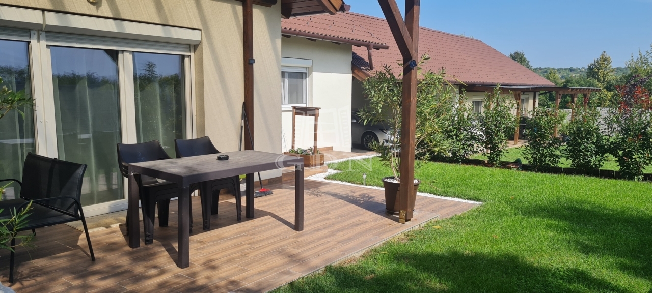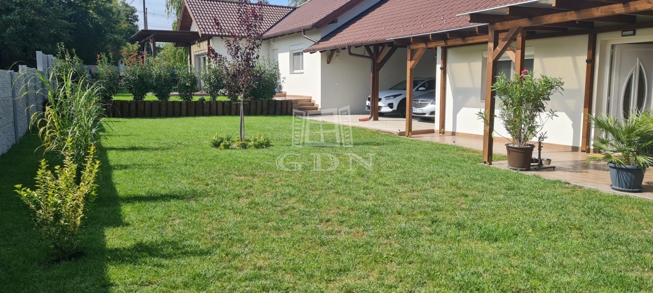 Tartozik hozzá 2 fedett autóbeálló és további 1 felszíni parkoló, kerti kisház, fedett grillterasz és gondosan parkosított kert.