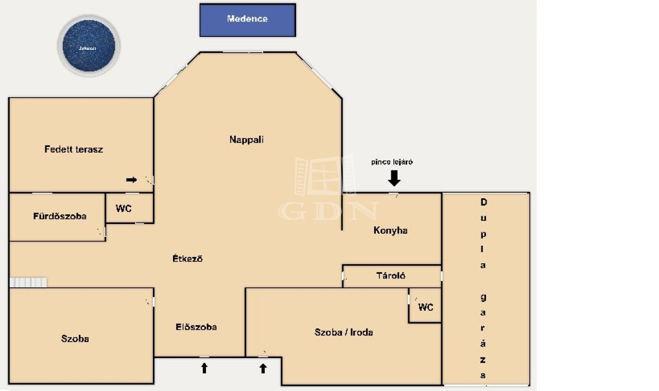 - Dupla garázs ( kb. 26 nm ) elektromos garázskapuval
