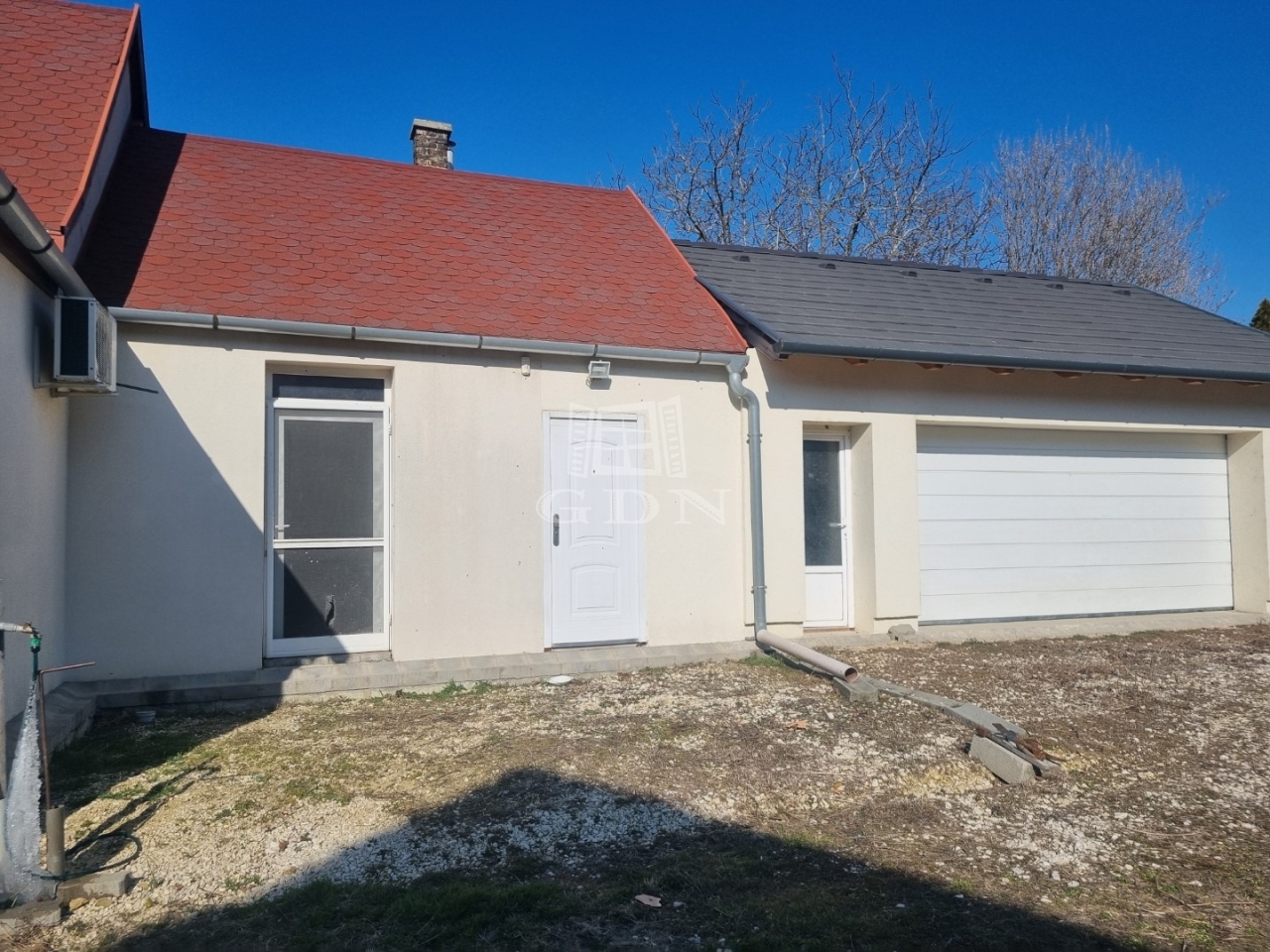 - előszoba, nappali konyha étkező, 2 szoba, fürdőszoba wc-vel, kamra + feljárat a padlásra, garázs