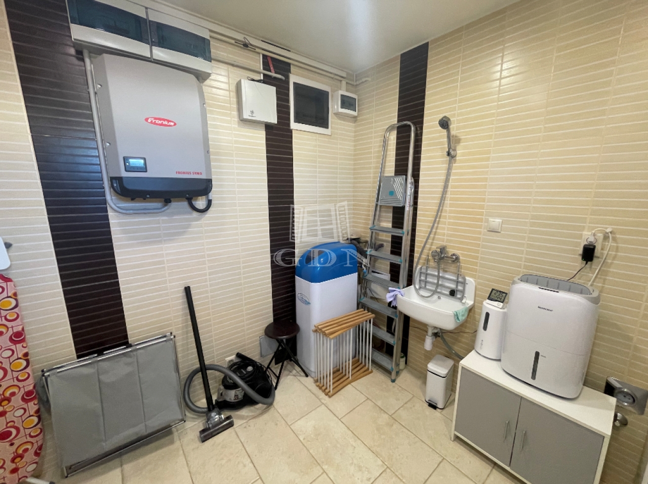 Szombathely herényi városrészén, magánútról megközelíthető 2017-ben, magas műszaki tartalommal épült családi ház várja új lakóit. Különlegessége, hogy akár a nagyiék is kötözhetnek. Külön nagy teraszról megközelíthető nappali-konyha, hálószoba, fürdő, wc elrendezésű, 38 m2-es kis ház külön megvásárolható. A hirdetésben szereplő ház 111 m2 nagyságú, három hálószobával rendelkezik. Kettő gardrób is kapcsolódik a szobákhoz. Nappalija tágas, nyugati tájolásának köszönhetően rendkívül világos. Konyhája kényelmét kamra szolgálja. Nagy méretű háztartási helyiségben található a lakás gépészete. A ház Silka falazó elemekből épült. Homlokzatára 2x12.5 cm multipor szigetelés, az aljzatba 3x5 cm lépésálló szigetelés, a födémre 2x20 cm szigetelés került. Energetikai szempontból kiváló az épület. Nyílászárói három rétegű üvegezéssel ellátott műanyag ablakok, alumínium redőnyökkel, szúnyoghálóval felszereltek. A tető Terran betoncseréppel fedett. A tetőre 15 kw teljesítményű napelemet szereltek, amely az ingatlan teljes villamos energia igényén kívül, a fűtést is ellátja. A helyiségek klímája külön termosztátokkal szabályozhatók. A hálószobákban falfűtés, a nappaliba fal -és padlófűtés, a fürdőkbe fal- és padlófűtésen kívül törölköző szárítós radiátorok kerültek. Az ingatlan dupla komfortos, tusolós és kádas fürdőszobáiban elszívók segítik a páramentesítést. A ház 36 m2-es fedett terasszal kapcsolódik a kerthez.