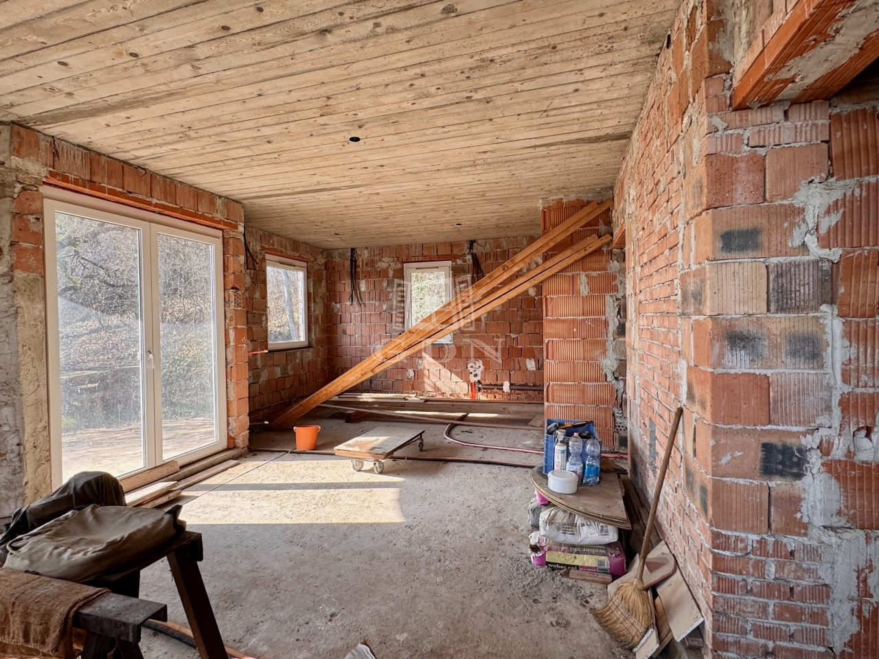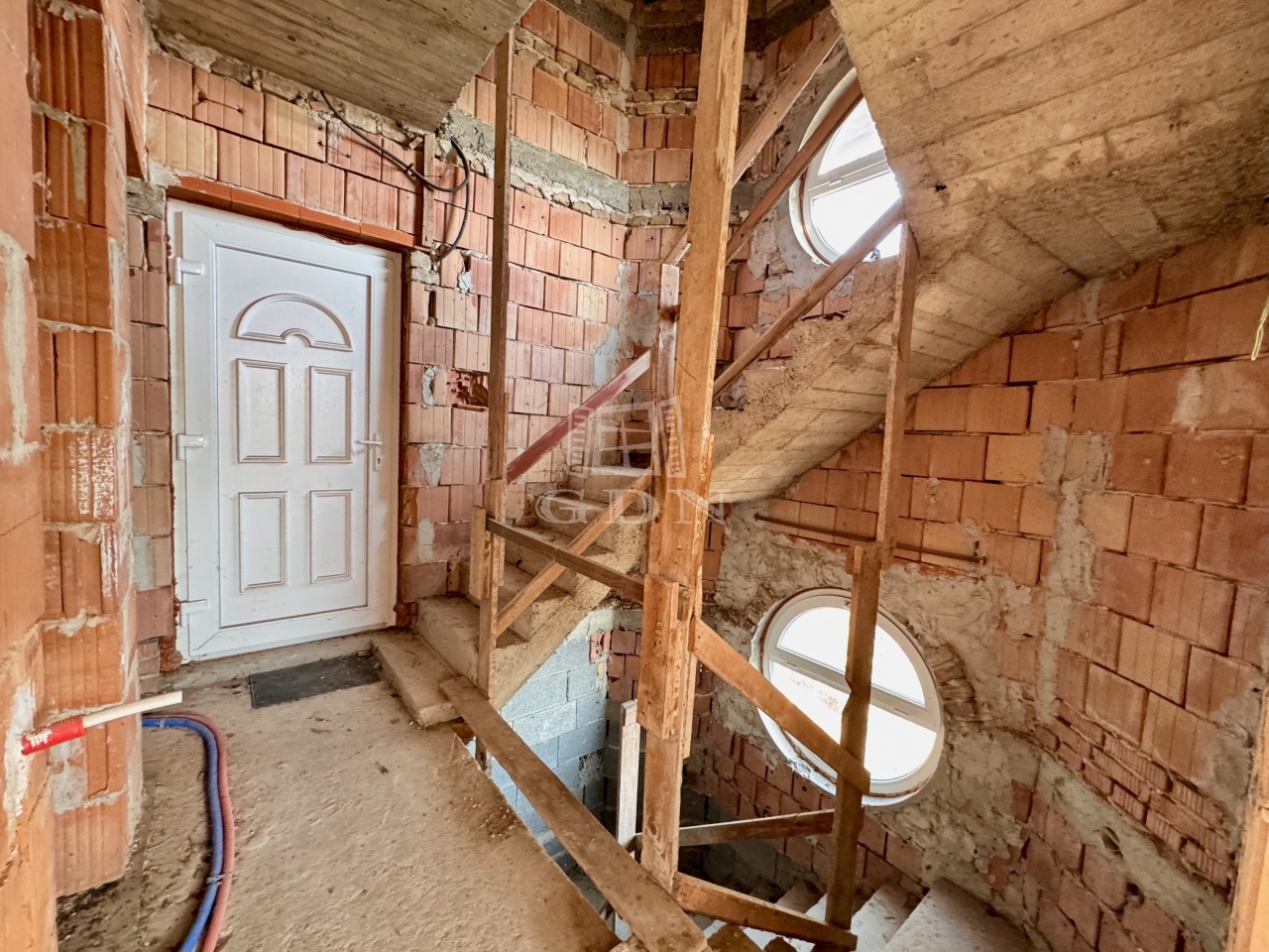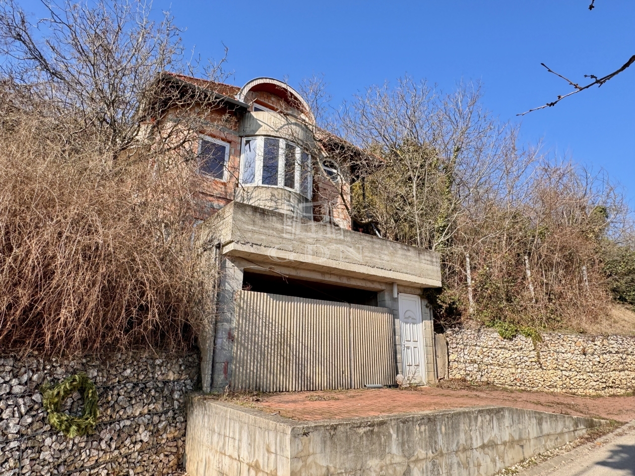 A telken neves építész által tervezett, 4 szintes, szerkezetkész (kb. 70%-ban) ház található.