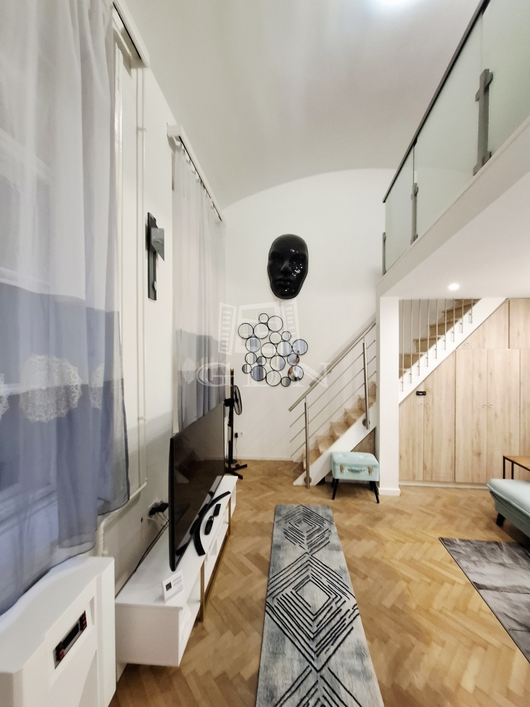 A lakás 5 méteres belmagasságának köszönhetően a nappaliban teljes értékű állógaléria került kialakításra, amely jelenleg külön hálószobaként funkcionál.