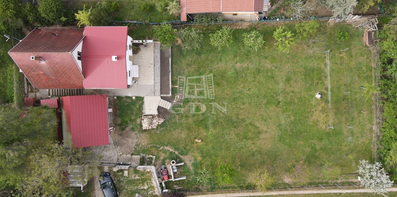 A telek 1212 m², teljesen körbekerített és füvesített. Található rajta egy fedett gépkocsibeálló, egy 20 m²-es terasz, valamint több gyümölcsfa is.