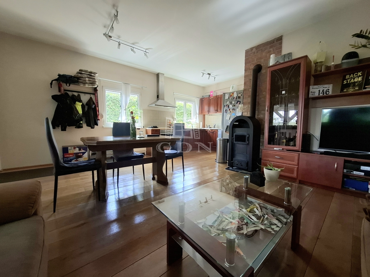 Amerikai konyhás nappali 29,5 m2, hálószoba 9,7 m2, fürdőszoba 6,3 m2, vendégszoba külön bejárattal 6,3 m2, fedett terasz Dunai kilátással 12,7 m2.