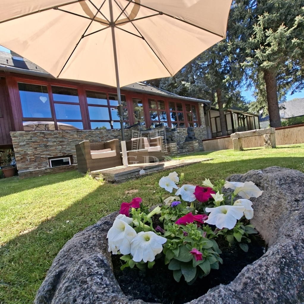 És hogy mitől különleges? Mert nagyon szép kőburkolatokkal látták el, mert ebben a természetközeli ingatlanban jó minőségű fa nyílászárók vannak, nagyon szép falépcsőn tudunk feljutni a tetőtérbe. Mert az udvaron igazán lehet pihenni, azért mert csend van, mert kettő, fedett pihenősarkot is kialakítottak. A szépen gondozott kertben van bőven hely a kertibútorok, napernyők számára így barátokkal és a nagyobb családdal is kényelmesen tudunk kikapcsolódni. Egy kisebb medencében lehet fürdeni, hűsölni meleg napokon. A kerítés is kőburkolat és gondozásmentes kerítéselemekből áll, ezzel teljesen intim szférát hoztak létre. Két utca felől is be tudunk jutni kapun keresztül autóval, a harmadik oldalon pedig személyi bejárat van.
