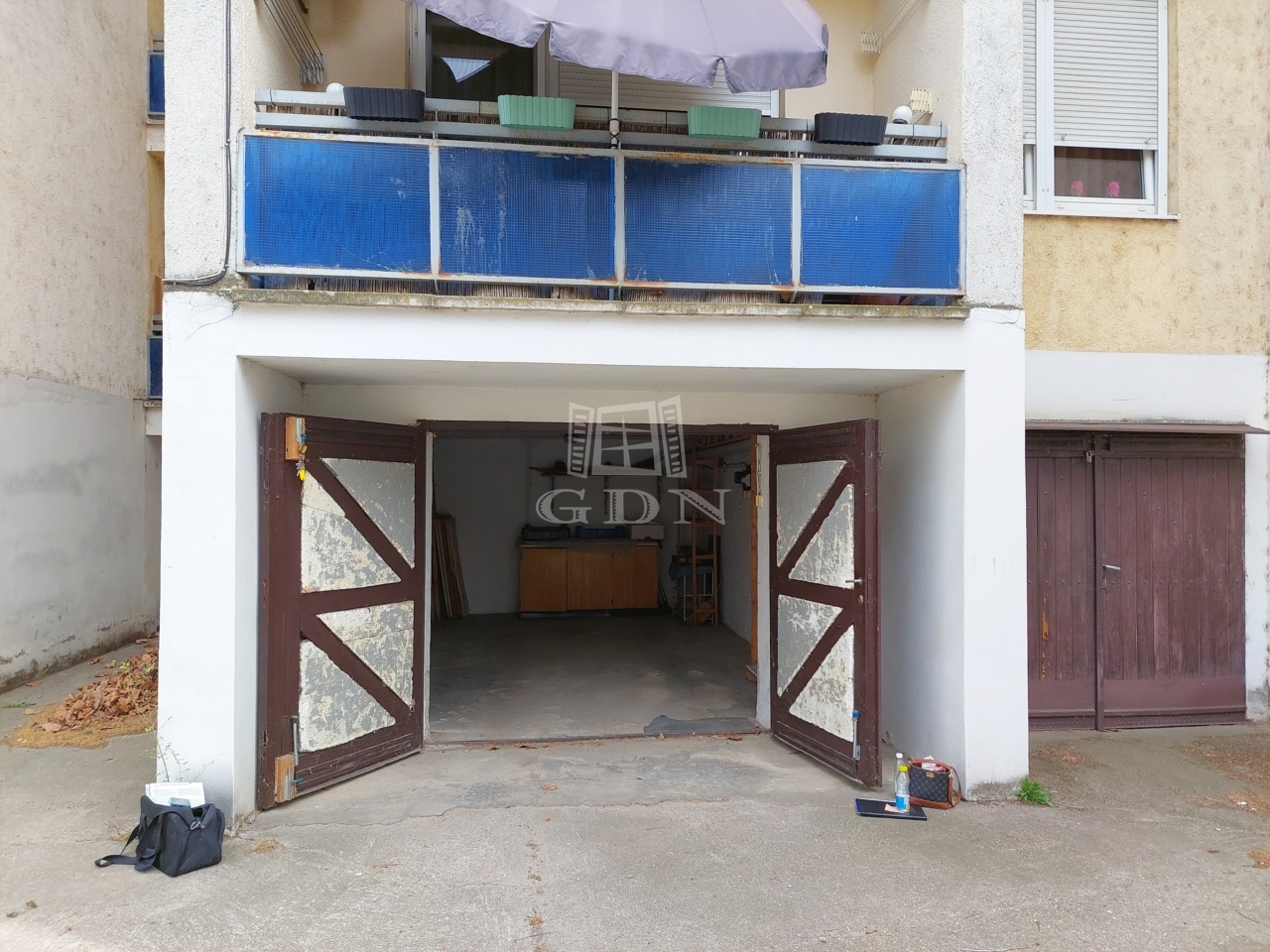 A garázs állapota jó, akár kisebb üzlethelyiség vagy iroda is kialakítható belőle. Az oldalfalaknál polcozás lett kialakítva, így tárolóként is hasznosítható.