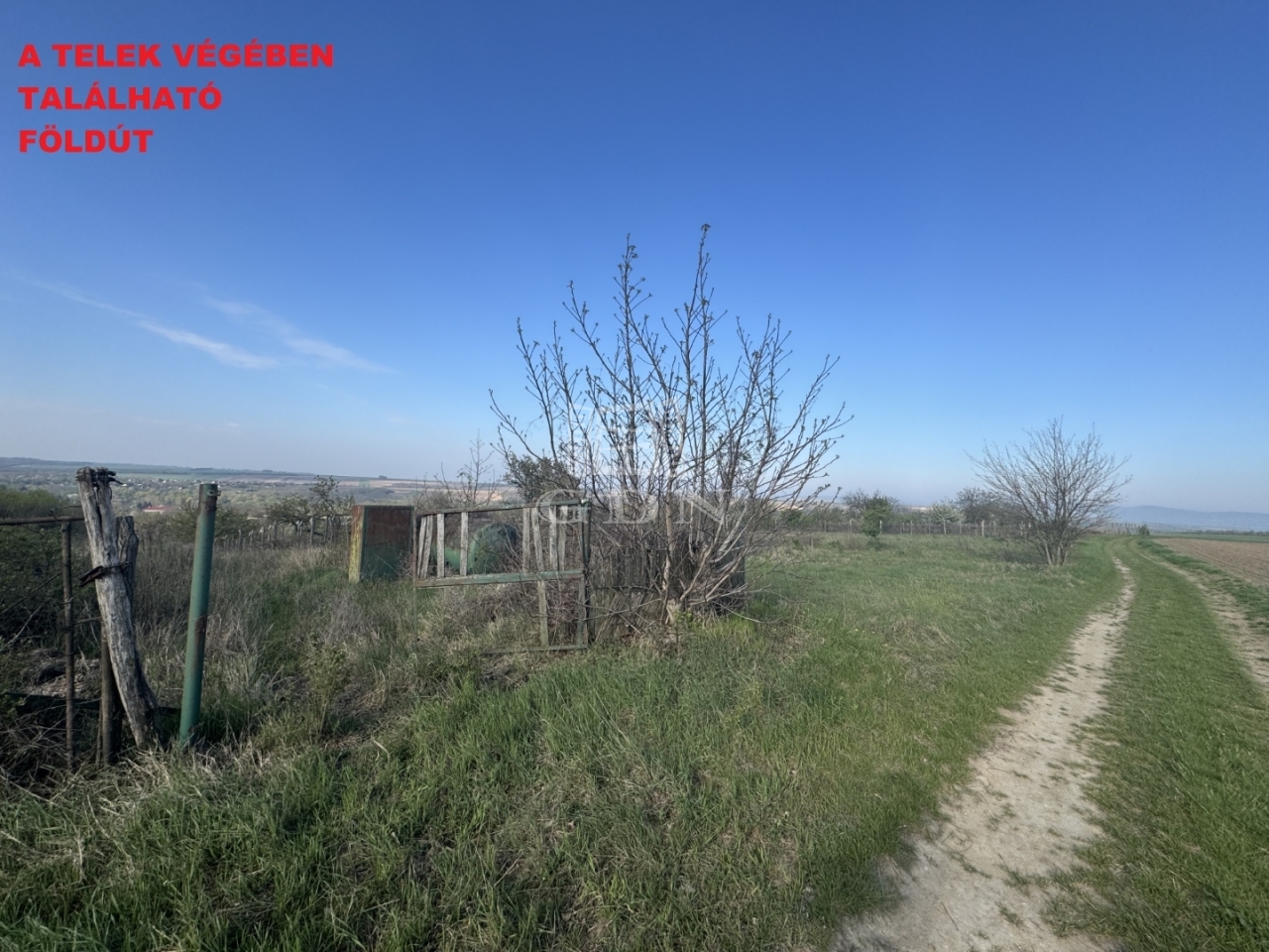 Az ingatlan egész évben könnyen megközelíthető: az aszfaltozott úttól körülbelül 500 méterre található, amelyet jó minőségű, sík murvás út köt össze a telekkel. A 2810 m²-es (16 × 175 m) telek enyhén lejtős, két utcafronttal rendelkezik. Területén egy körülbelül 40 m²-es könnyűszerkezetes melléképület található, amely egy szobából és egy előtérből áll, továbbá egy kőből épült présház pincével. A telek eleje völgyben helyezkedik el, míg a hátsó része egy mező szomszédságában húzódik.