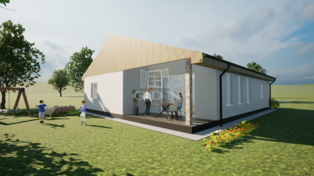Egy lenyűgöző, 1874 m²-es telken épül meg ez a modern, letisztult stílusú családi ház, ahol minden adott a nyugodt, minőségi élethez.